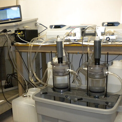 UGEMS is an adaptation of the Gust Microcosm using a combination of a spinning disk and a central suction to generate nearly uniform shear stress across sediments in a cylindrical container, designed to measure the erodibility of fine-grained sediments in a 10 cm core tube(larger core diameters available upon request) over a calibrated range of shear stresses from 0.01 – 0.6 Pa.